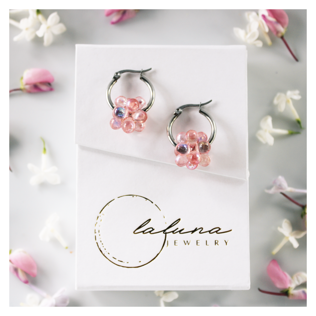 Käsittele lasikorvakoruja varoen ja vältä pudottamasta niitä, jotteivät lasihelmet rikkoutuisi. Säilytä omassa rasiassaan.